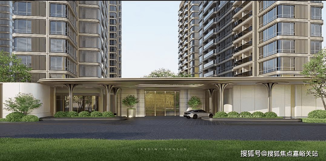 另外,项目地上三分之二的楼栋有架空层,最高层高约4.5米,合计约3000㎡架空层作为泛会所,在室内外交叠过渡的空间中,以自然之景点缀,营造全龄共享的丰盛聚场。再比如项目的外立面。