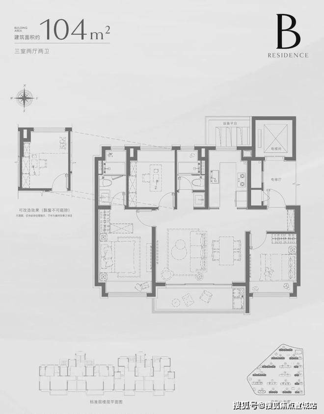【招商中旅·揽阅】共计规划17栋12-14F小高层,首开楼栋位于整个项目的北侧,共3种户型,分别为建面约96㎡三房两卫、建面约104㎡三房两卫、建面约135㎡四房两卫。3种户型提供了全生命周期成长空间的方案。