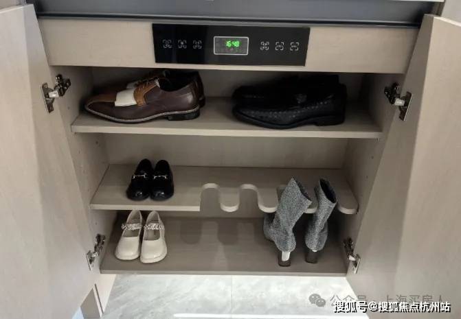 在时代乐章,你既能看到石材用料的台盆和玄关柜、全卧室的人字拼,也能看到实在的收纳储物空间和置物架,从外到内样样齐全;
