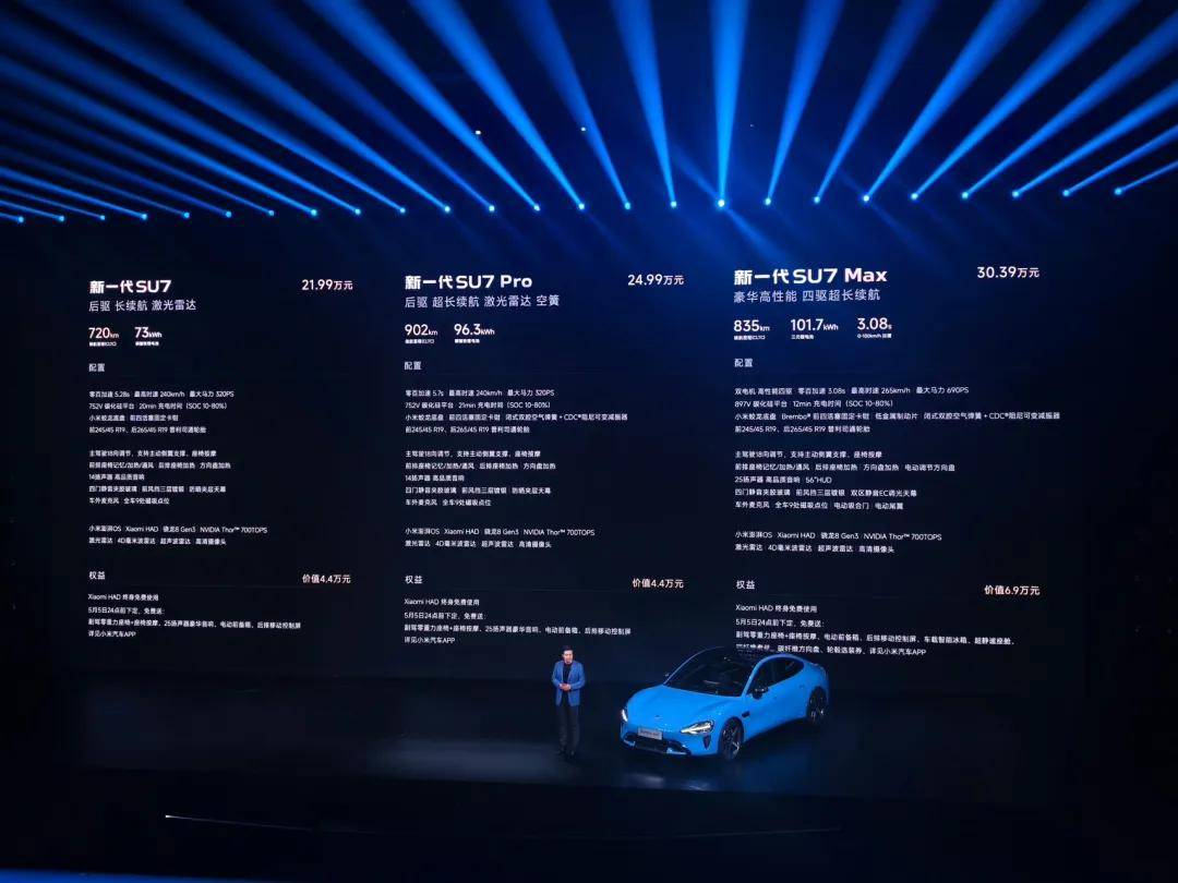 伟德国际(bevictor·1946)源自英国官方网站-3月19日晚,小米举办春季新品发布会,发布新一代SU7。小米创办人、董事长兼CEO雷军宣布,新一代小米SU7标准版起售价21.99万元,Pro版起售价24.99万元,Max版起售价30.39万元。