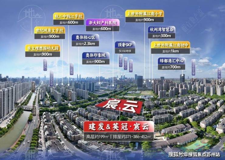 由3幢高层+3幢排屋组成,距杭州之门直线公里,奥体印象城直线米,位于世纪城的核心。