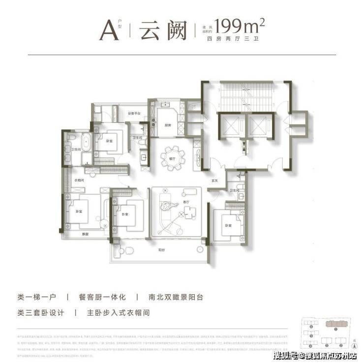 即将首开的建面约199㎡A户型,做到了类一梯一户设计,可实现“电梯厅玄关化”,私密感满分。