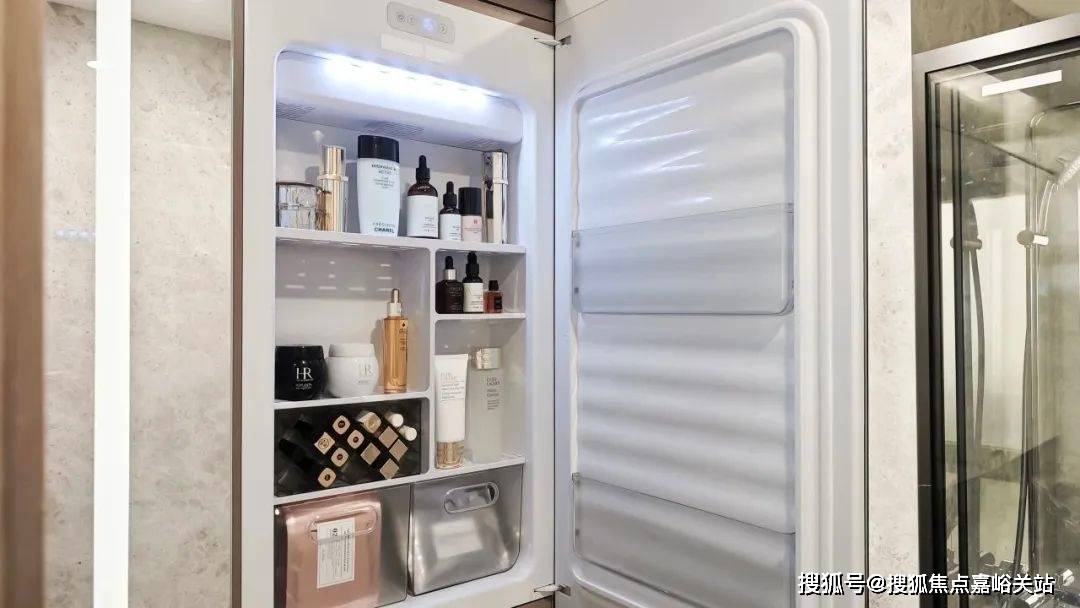 卫浴空间同样精彩,采用高仪的台盆、伟德国际victor1946龙头、智能马桶、淋浴花洒等,主卫创新定制“美妆冰箱”,满足业主对美妆、护肤用品冷藏的需求,足见开发商对成本的舍得。
