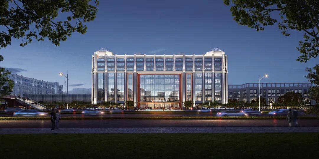 据了解,数智大厦外立面玻璃幕墙面积7582平方米,幕墙占比48%,建筑立面不是单纯的玻璃盒子,而是形成了玻璃(虚)与金属和石材等实体墙面(实)的有节奏组合。这种设计创造了丰富的光影变化和立面层次,使建筑外观在一天中随着光线的变化而呈现不同的效果,既有科技感,又不失沉稳和力量感。