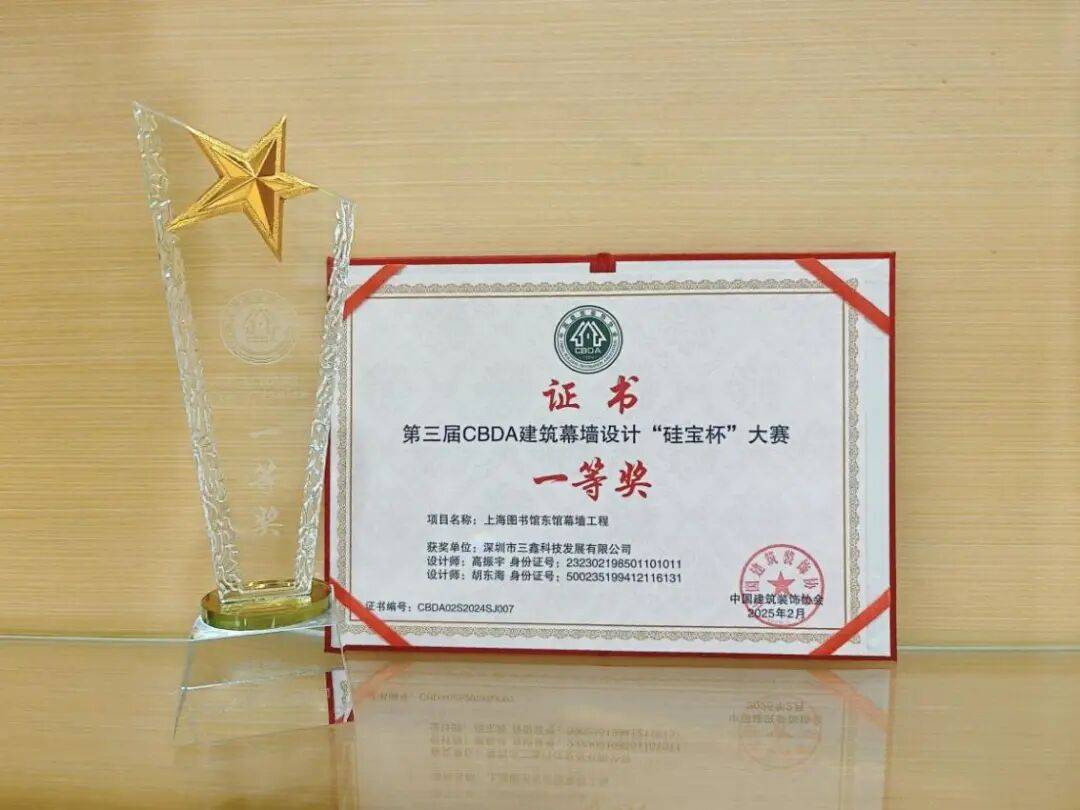 2025年,三鑫科技在建筑幕墙领域持续展现技术领先优势与全链条一体化创新能力,全年共获近30多项各类奖项与荣誉,包括国家专利授权21项。