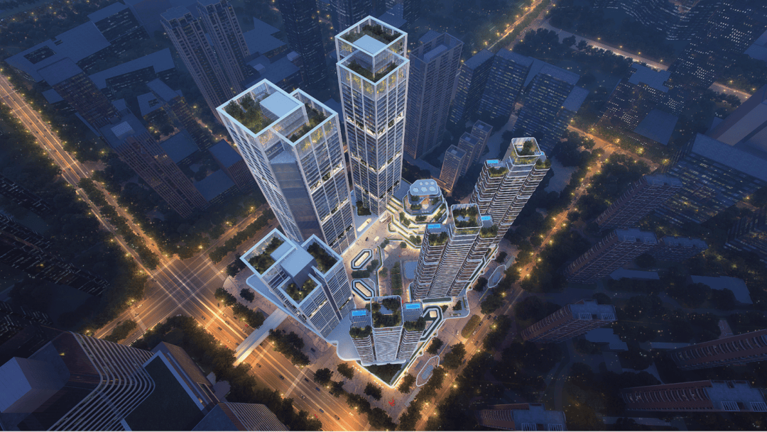 EIC项目的建筑设计极具现代感和未来感。六栋摩天伟德国际吧建筑群高达200米,以弧形玻璃幕墙为主要元素,呈现出梦露裙摆式的流线造型,既优雅又充满力量感。双层幕墙结构不仅增强了建筑的保温隔热性能,还赋予了建筑独特的视觉效果。
