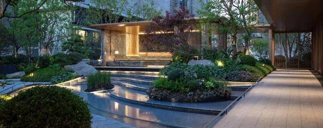聆星客厅前方种植了松界王者——日本黑松,约4000万+的顶豪融创外滩壹号院的社区内,也有一颗同款;