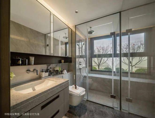 杜拉维特的台盆、壁挂智能马桶,高仪的龙头、淋浴花洒在江湾金茂府卫生间聚首,700万+级很少有这样的配置。