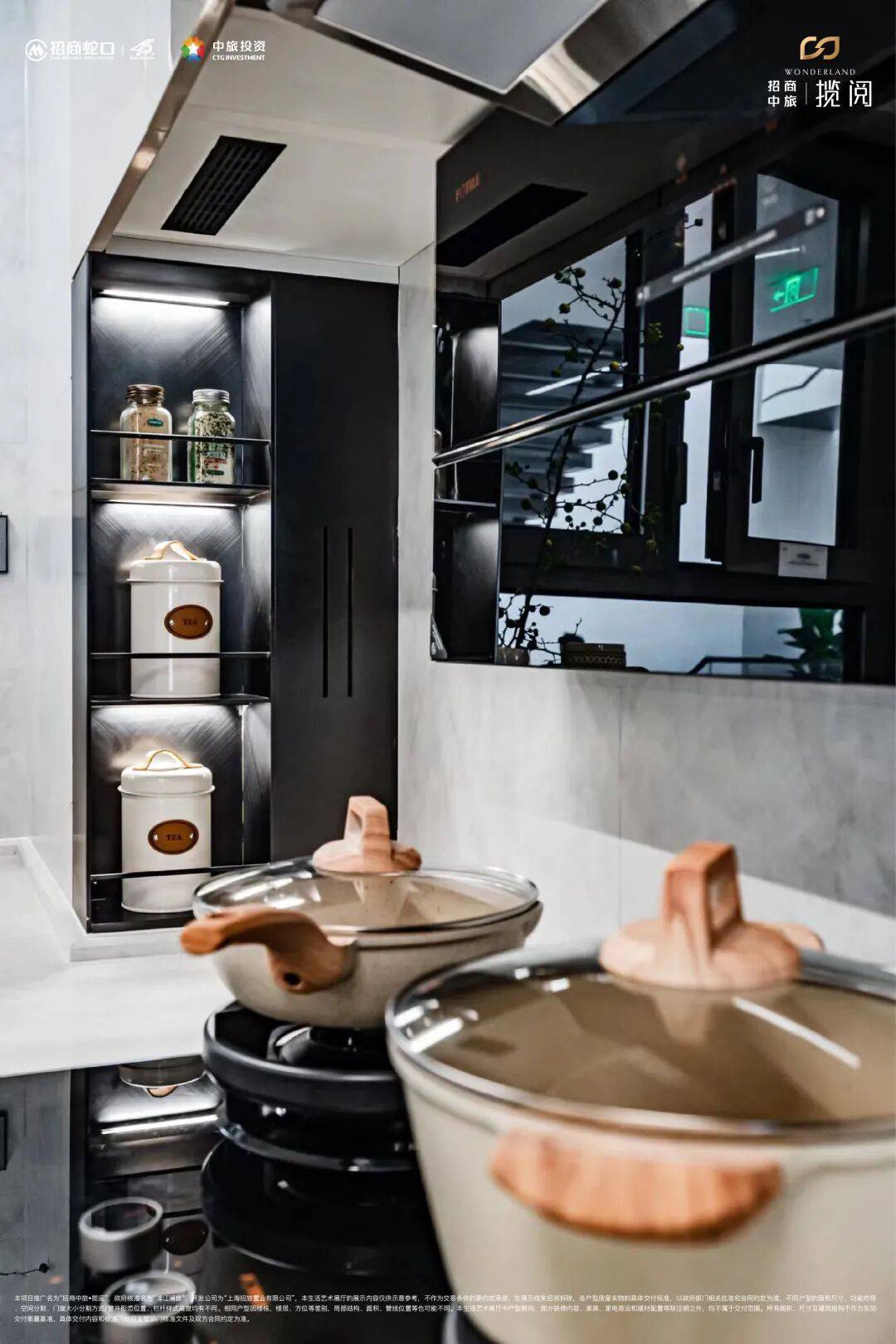 与此同时,项目在智能化方面下足了功夫,油烟机感应触控、燃气灶具有防干烧功能,60秒干烧会自动熄火关气,智能化的同时更注重居家的安全。